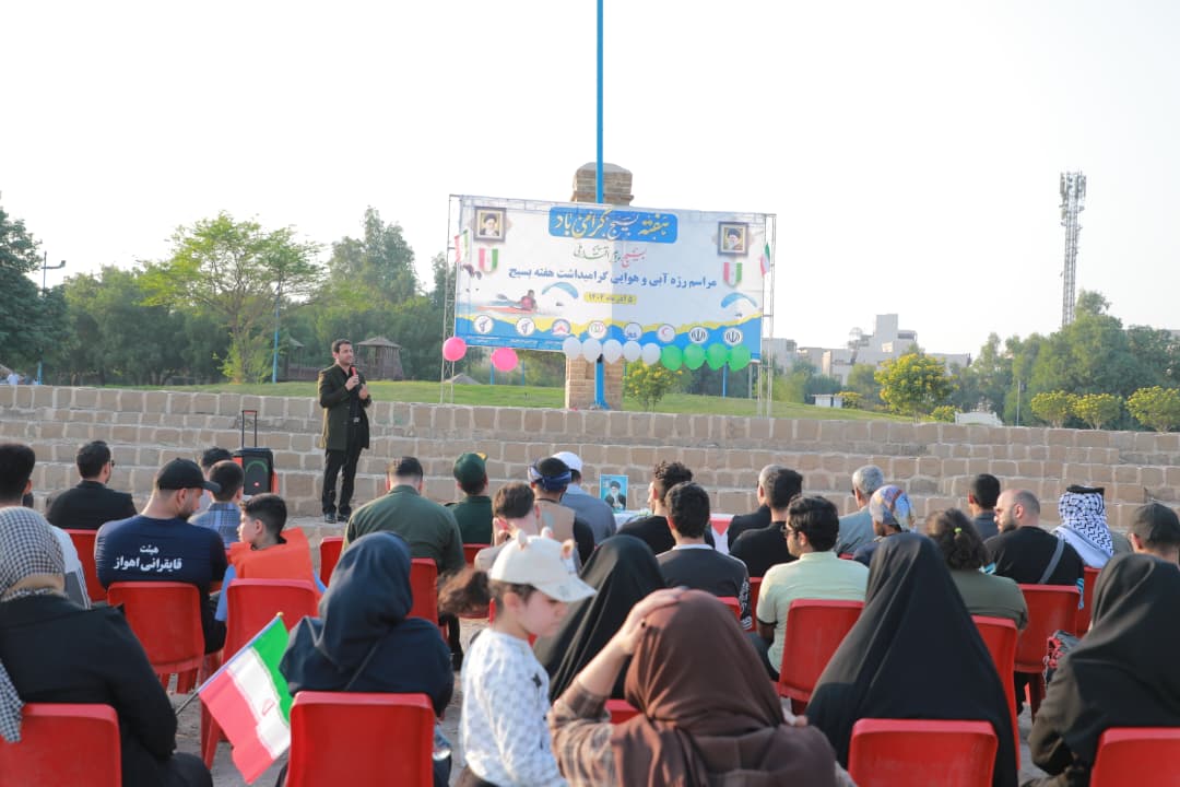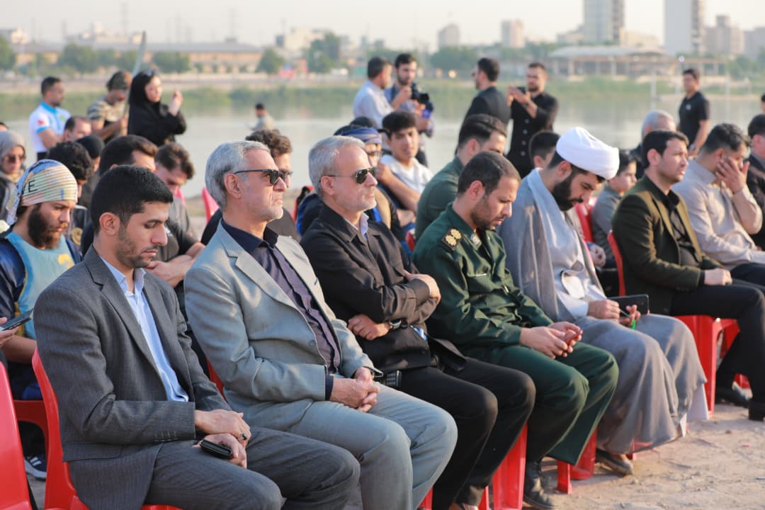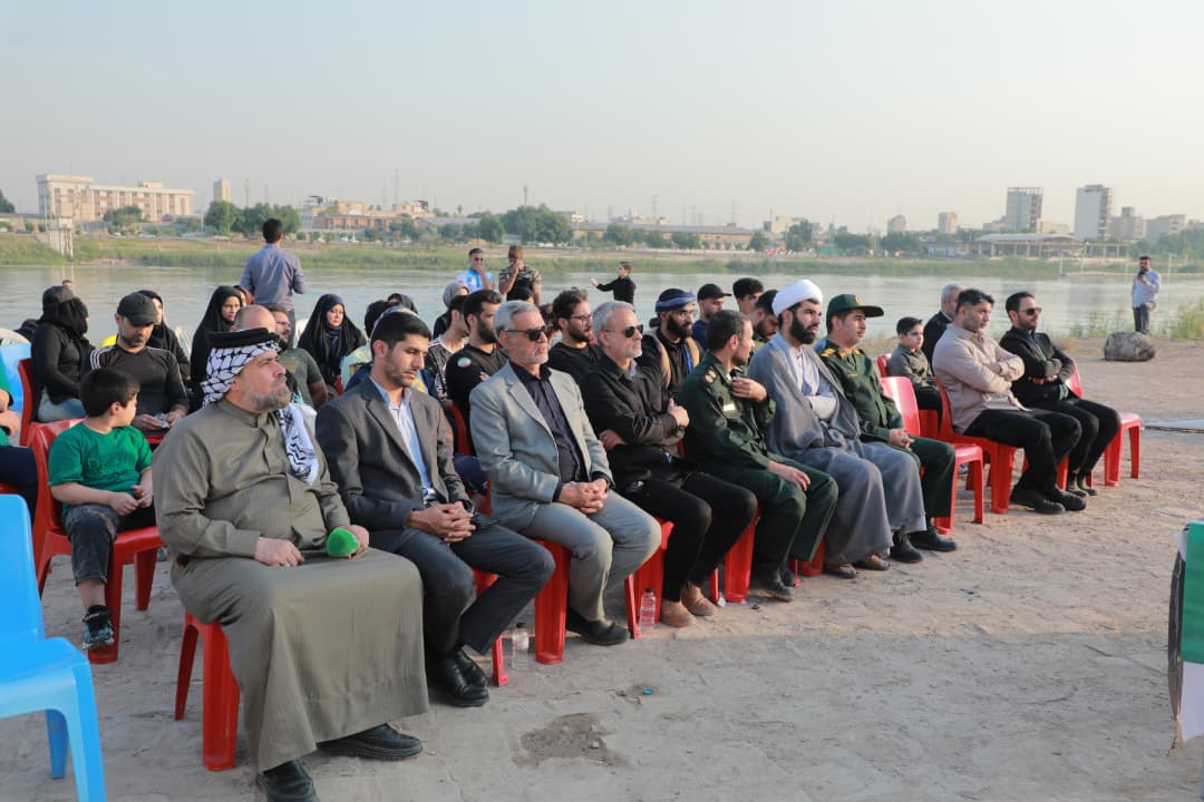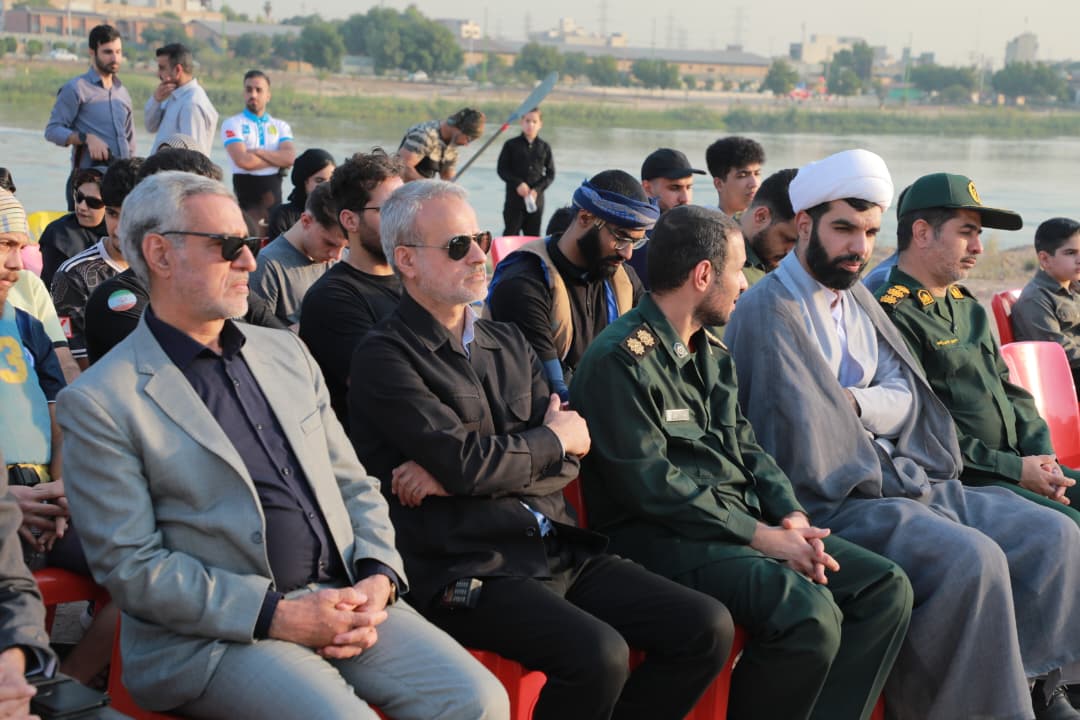 به گزارش روابط عمومی فدراسیون قایقرانی به نقل از روابطعمومی هیات قایقرانی استان خوزستان، در این مراسم که با حضور نیسیزاده فرمانده ناحیه امام حسین علیه السلام، عصاره طاهری رئیس هیات قایقرانی استان و جمعی از مسئولین ردههای بسیج و ارگانهای فرهنگی و ورزشی استان خوزستان و کلانشهر اهواز و همچنین استقبال همشهریان همراه بود، ورزشکاران قایقران و پاراگلایدرسوار با اجرای حرکات زیبا و نمایشی، حاضرین در این مراسم شاد و مفرح را به وجد آوردند.