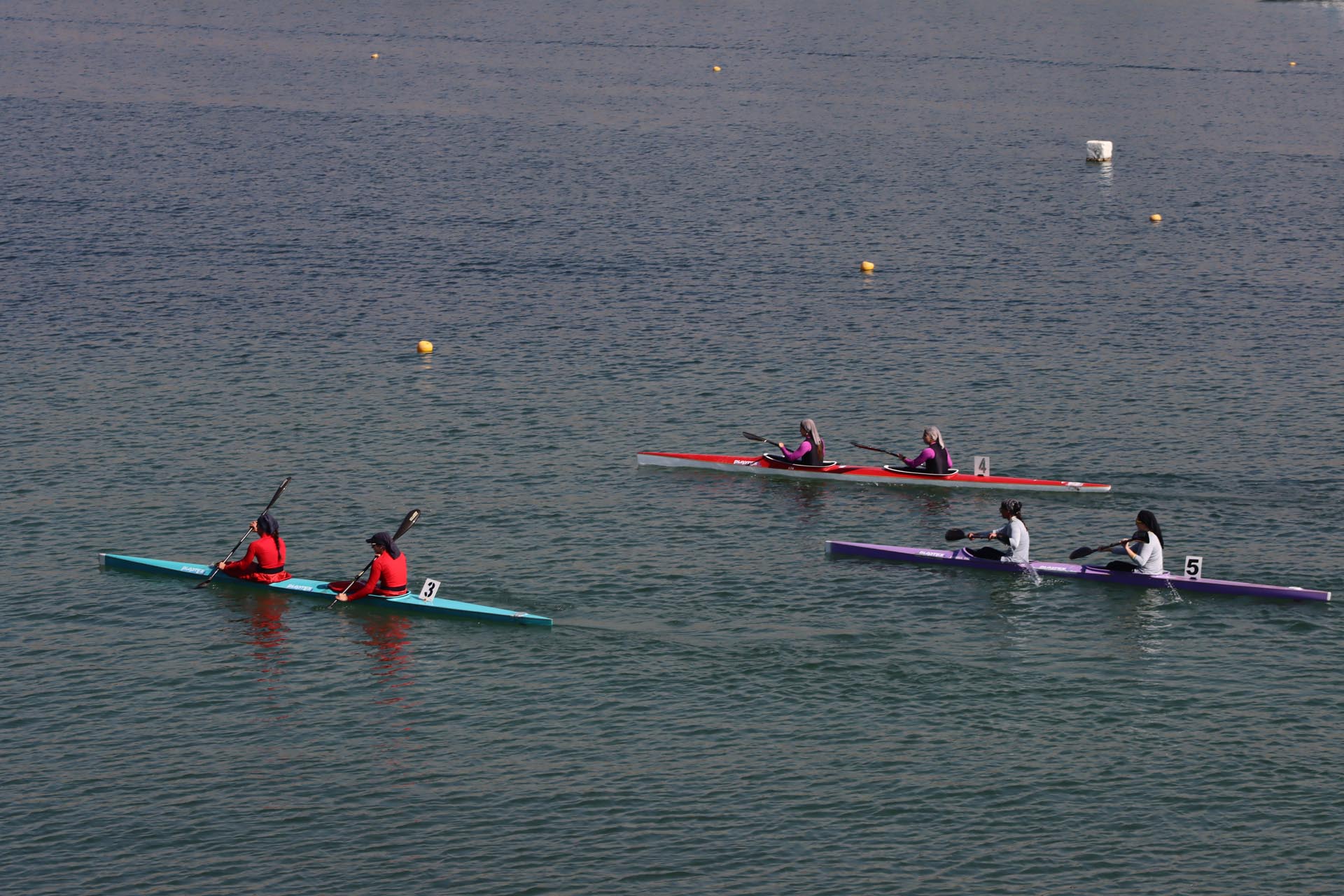 این مسابقات با رقابت قایقرانان کایاک و کانو در بخش بانوان و مردان در دریاچه آزادی در جریان است.