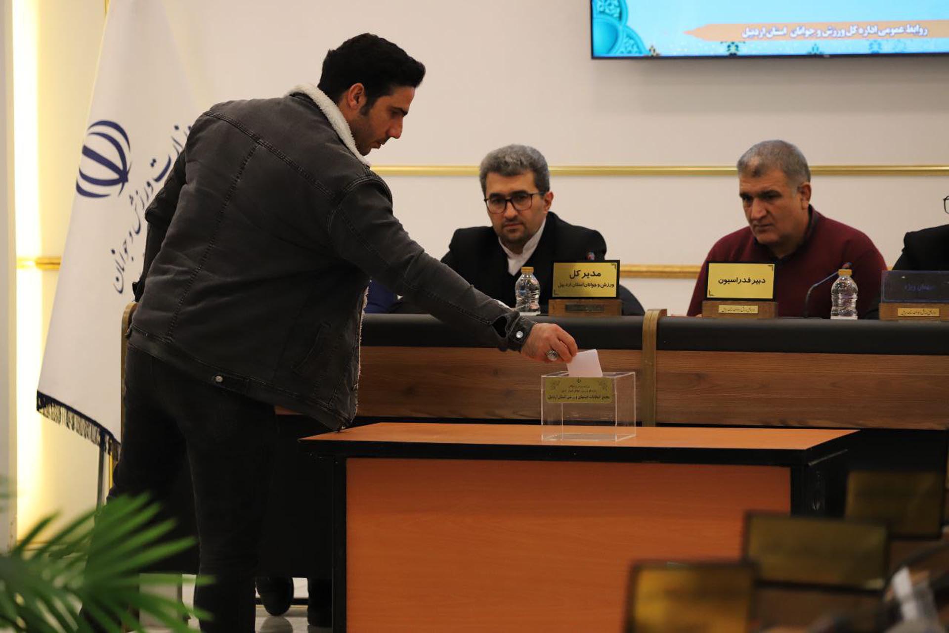 در این مجمع انتخاباتی که تنها یک کاندیدا داشت، شاهین مهردادآذر با کسب ۱۲ رای از مجموع ۱۲ رای ماخوذه به مدت چهار سال به عنوان رئیس جدید هیات قایقرانی استان اردبیل انتخاب شد.
